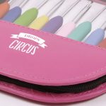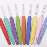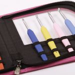 This Drops Crochet Set contains 9 crochet hooks (13 cm) made of aluminium with plastic grips, in sizes 2.0, 2.5, 3.0, 3.5, 4.0, 4.5, 5.0, 5.5 and 6.0 mm, packed in a fluorescent pink faux leather case with clear vinyl front flaps.