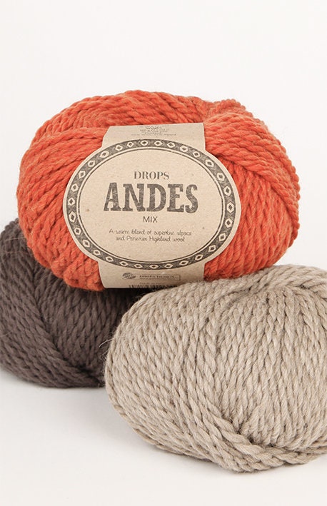 This yarn is spun from 2 strands in the traditional combination of 65% Peruvian Highland wool and 35% superfine alpaca. The mixture of Drops Andes brings out the alpaca silky surface, while the wool gives the yarn better shape stability. The yarn fibers are untreated, which means that it is only washed and not exposed to any chemical treatment prior to the dyeing. This highlights the fiber’s natural properties, while it also provides a better shape and texture quality.