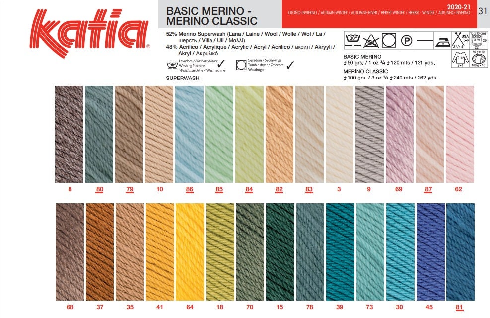 Katia Basic Merino content: 52% merino wool, 48% acrylic.