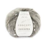 These giant teardrop-shaped spangles appear among the soft mohair and alpaca fibers. Create glamorous party pieces with Katia Casiopea and look amazing with this sequined yarn that is also soft and fluffy thanks to its Mohair and Alpaca fibers.