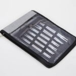 Rinkinys supakuotas juodame-pilkame prakštiškame dėkle.