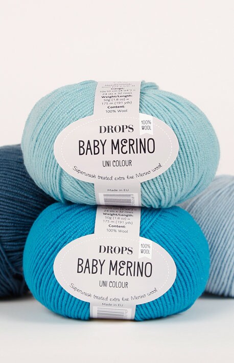 Drops Baby Merino – tai siūlai, susukti iš ypač smulkių merino vilnos gijų, patogūs ir švelnūs odai, todėl puikiai tinka kūdikių ir vaikų drabužiams. Siūlas suverptas iš daugybės plonų gijų, taip suteikiant siūlams aptakumą ir elastingumą. Mezgant svarbu parinkti tinkamą mezginio tamprumą – geriau megzti tampriau, nei laisviau.