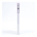 The embroidery fabric is rolled up in a transparent rectangular tube to prevent damage, creases and folds.